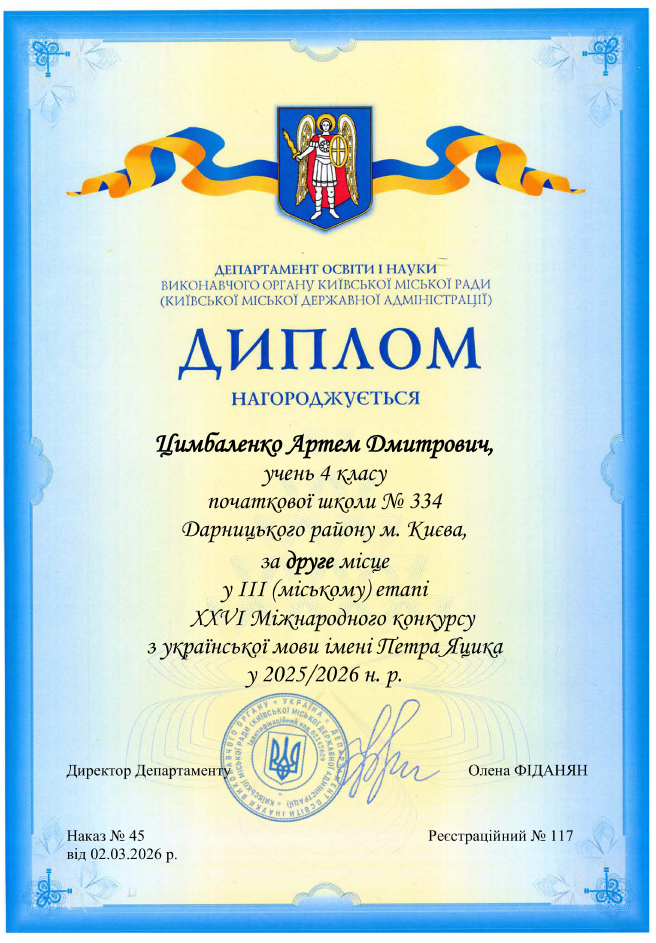Переможці Міжнародного XXVI конкурсу з української мови імені Петра Яцика. admin 14 Вітаємо переможців районного та міського етапів XXVI Міжнародного конкурсу з української мови імені Петра Яцика! Screenshot Вітаємо з Великоднем! 27 Кві, 2019 admin_anna Здорові діти – здорова нація 15 Кві, 2019 admin_anna Всеукраїнський турнір з хортингу “Козацька звитяга” 8 Кві, 2019 admin_anna Міжрегіональний семінар-тренінг “Play Lab” 20 Бер, 2019 admin_anna Еко-урок “дуби шевченка єднають Україну” 12 Жов, 2018 admin_anna Перший крок до знань з нами 3 Вер, 2018 admin_anna